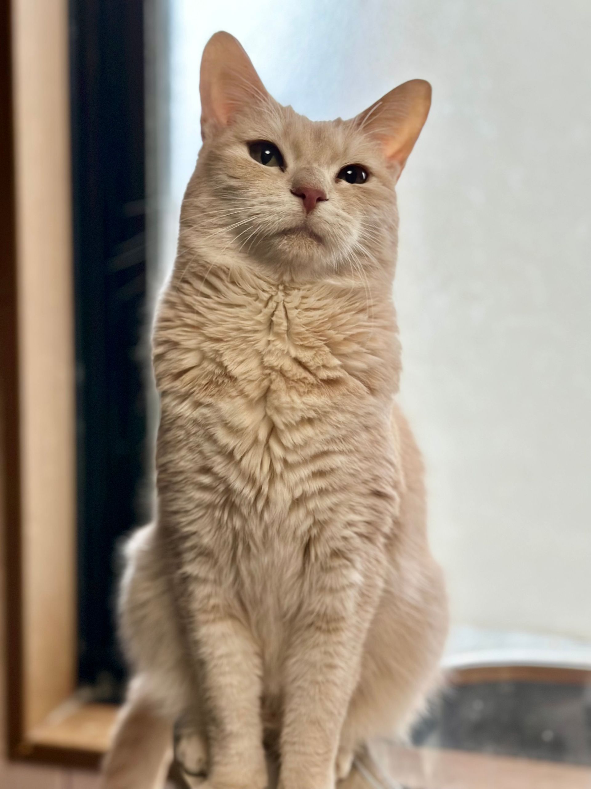 This beautiful pale cream girl is incredibly friendly and talkative, happiest when she is near her people. She loves gentle affection and has a natural way of making a home feel warmer.