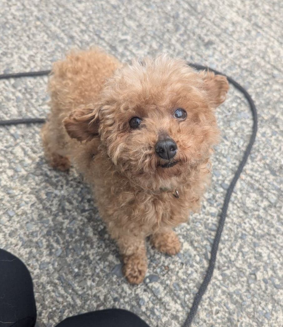 Sandy is a friendly toy poodle rescued from a breeding facility and currently adjusting to life outside the puppy mill. He is looking for a loving home in Japan through HEART Tokushima.